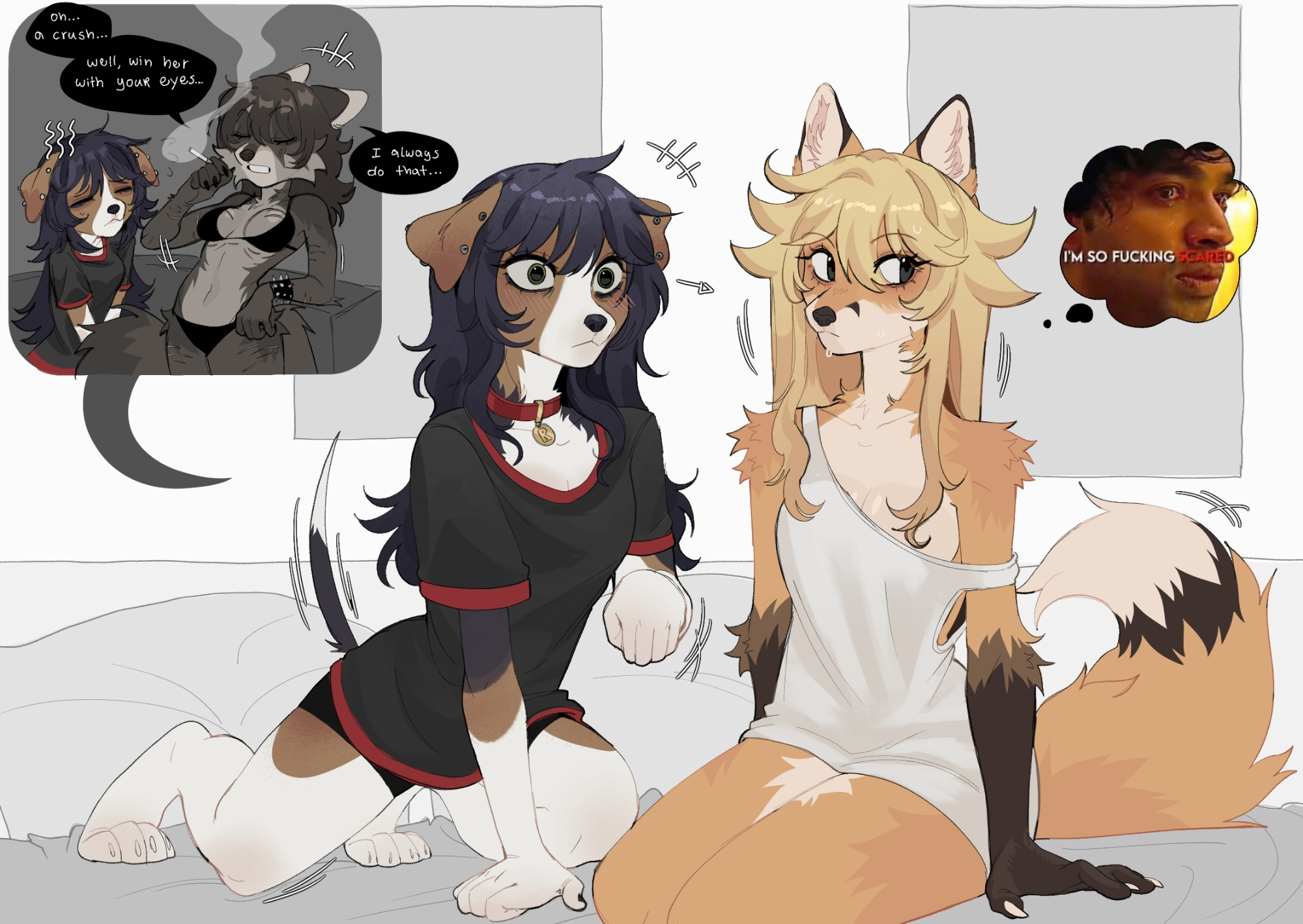 You seem to like yuri stuff so much, and I'm fine with that, but motherfluffer the "pointless reaction image" I post is not implying something homophobic, it's a reference to "I know what you are 🏳️🌈" on my own version without giving any damn text or evident context, but yet it looks like you misinterpret my post and think I'm mad
