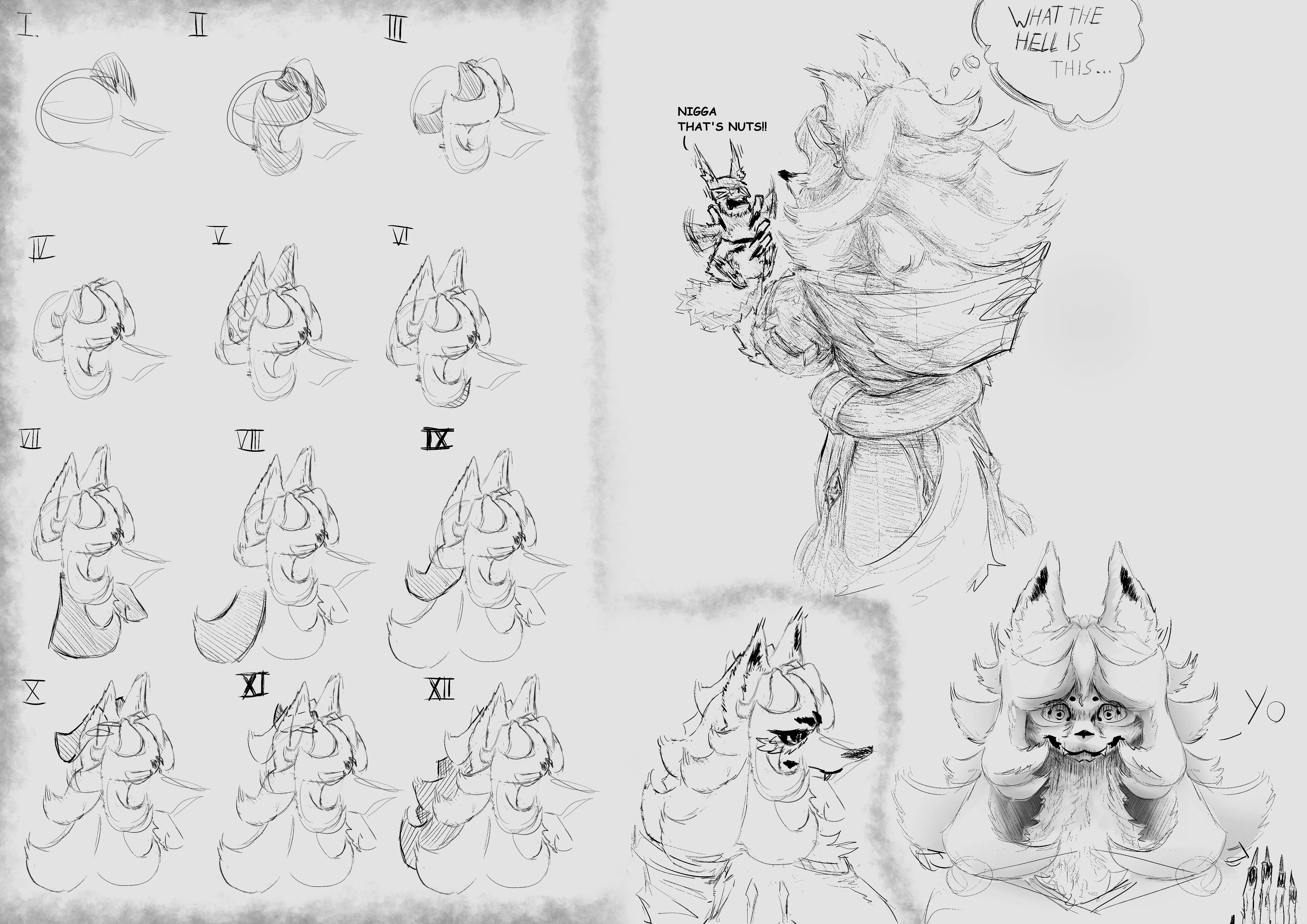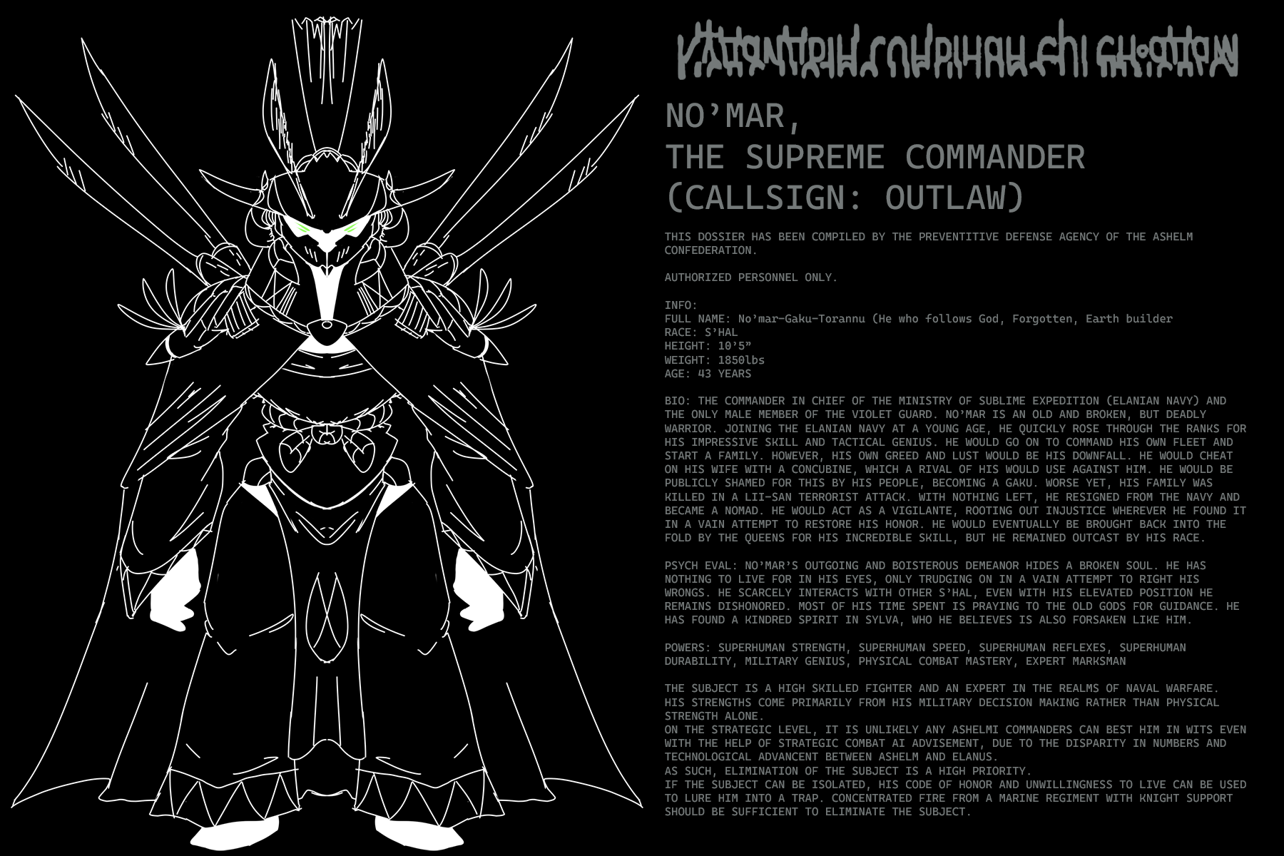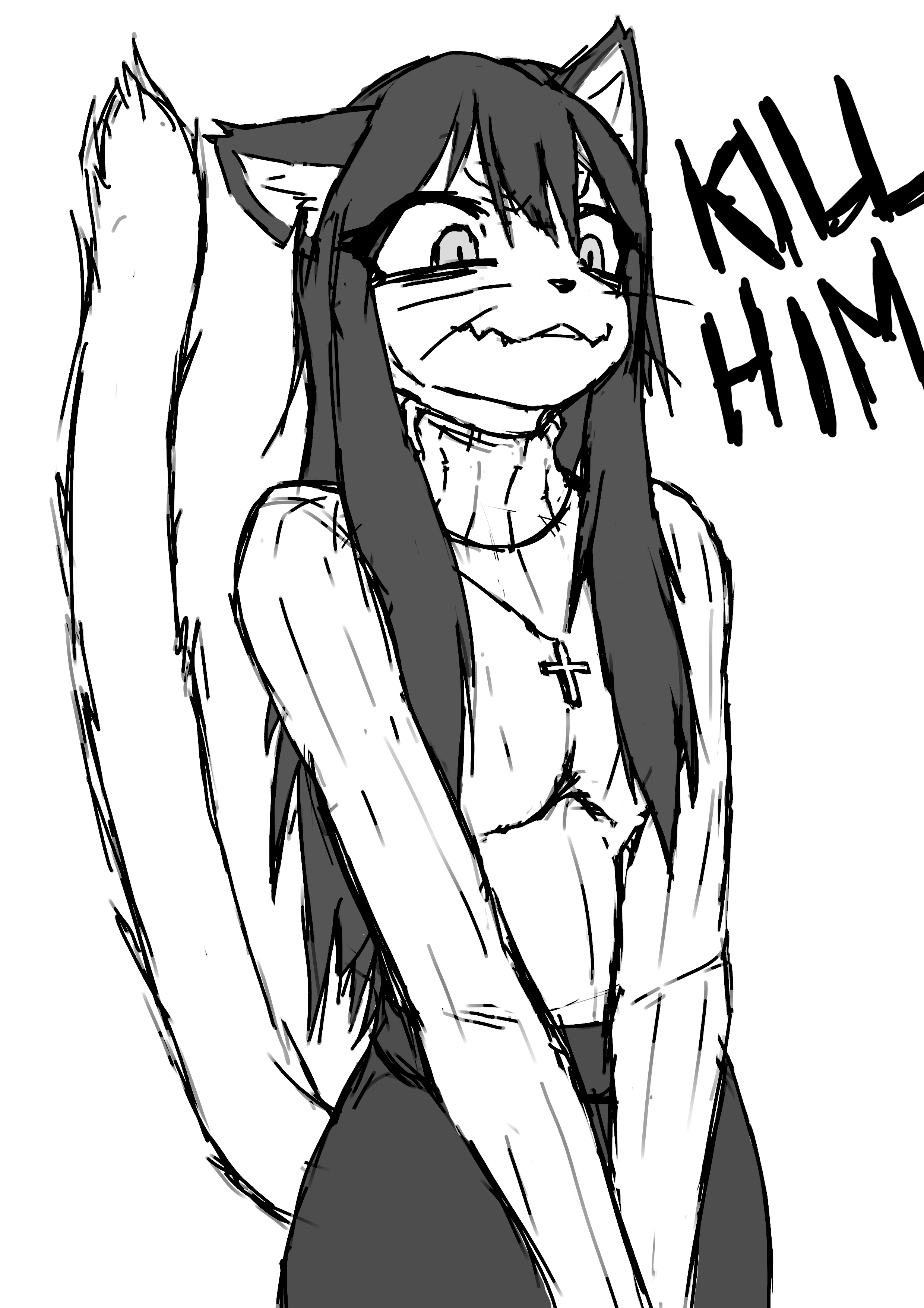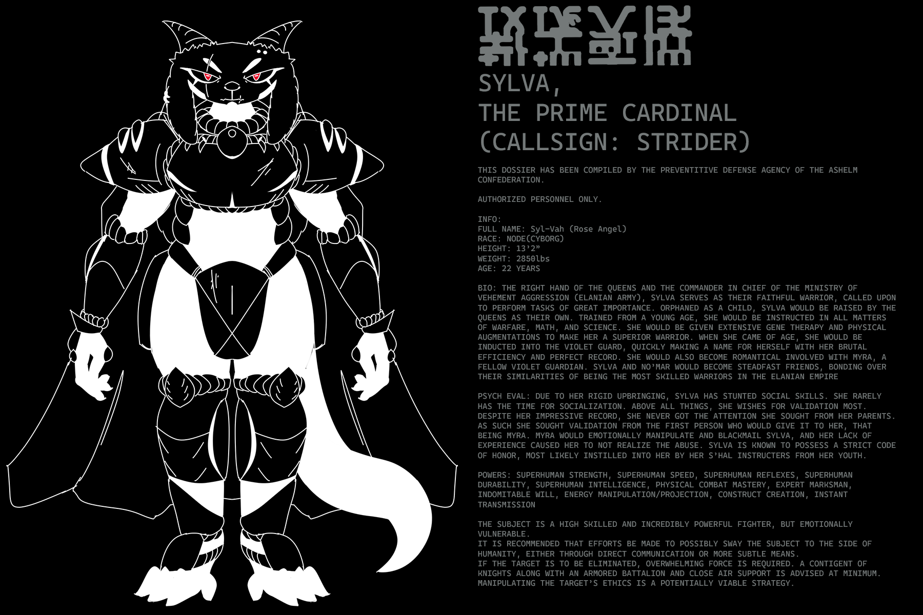 The white patches of fur are unnatural to her species; such discoloration is a symptom of scars that linger on her very soul.