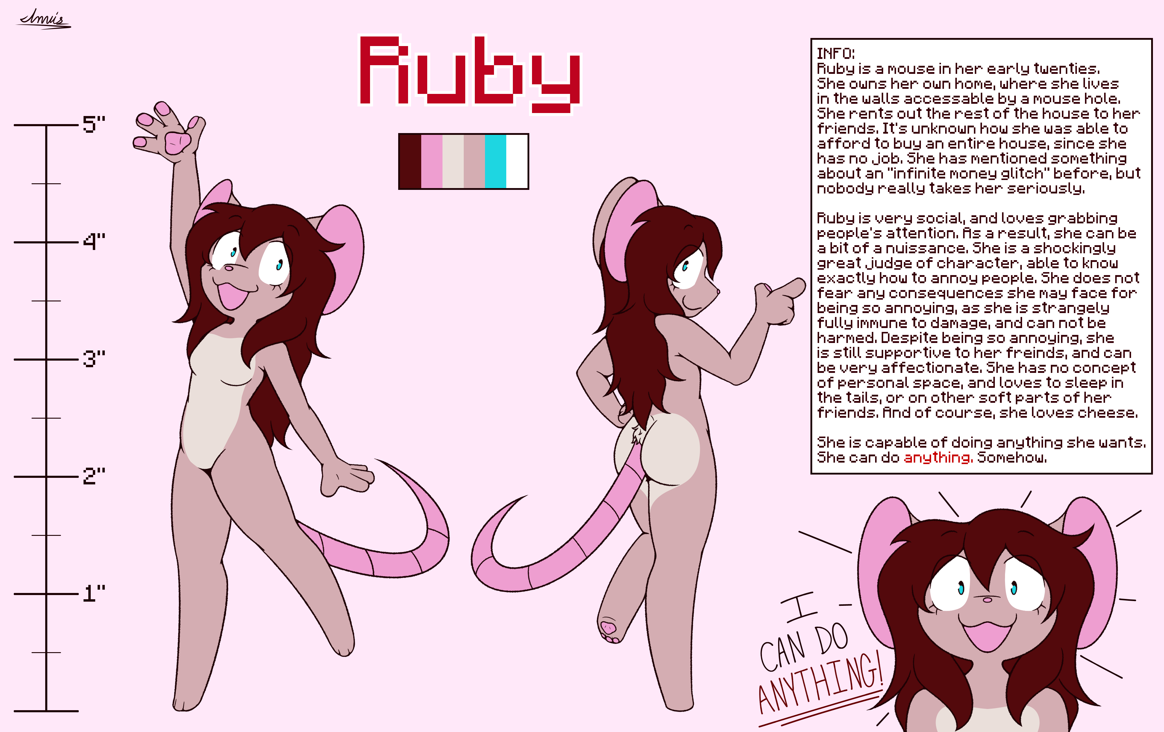 Her hobby is gunsmithing, which she secretly enjoys because it makes her feel more adult. She's not a very good shot though, and her wimpy muscles become sore from the strain of recoil easily.