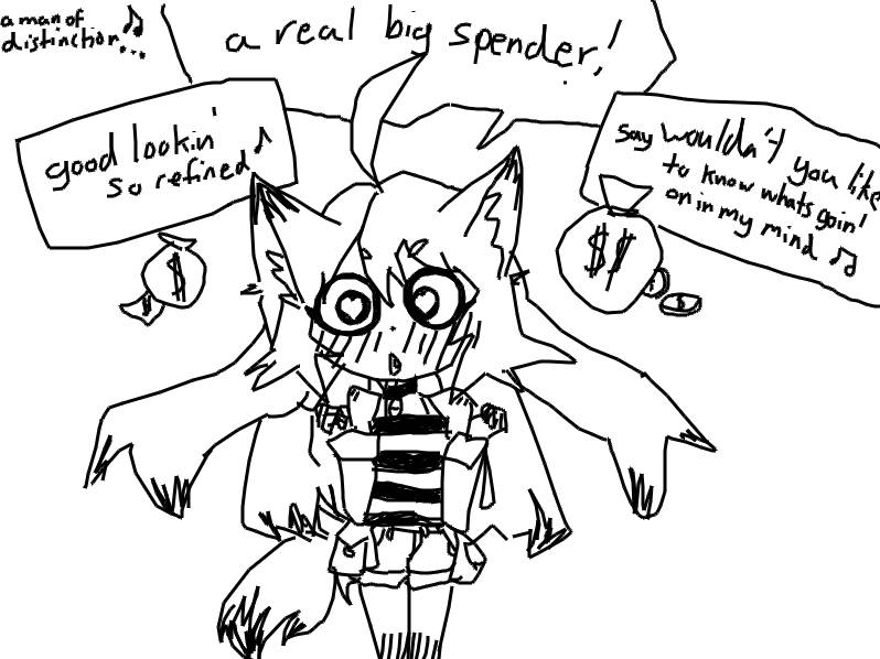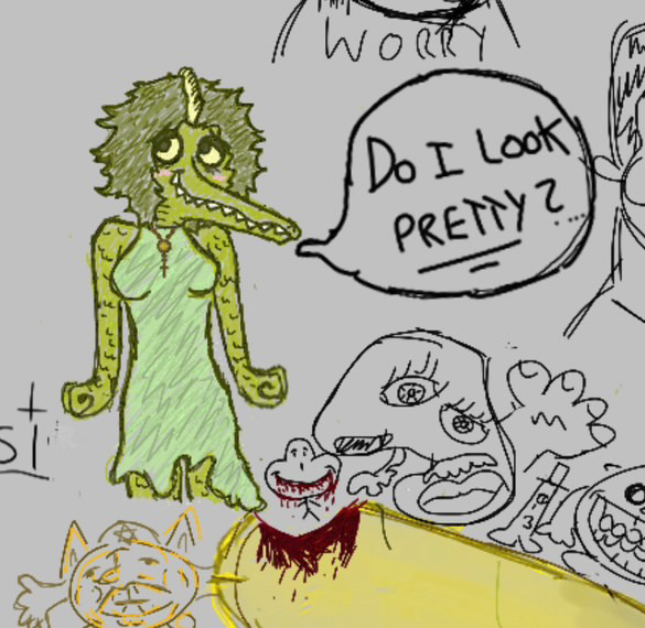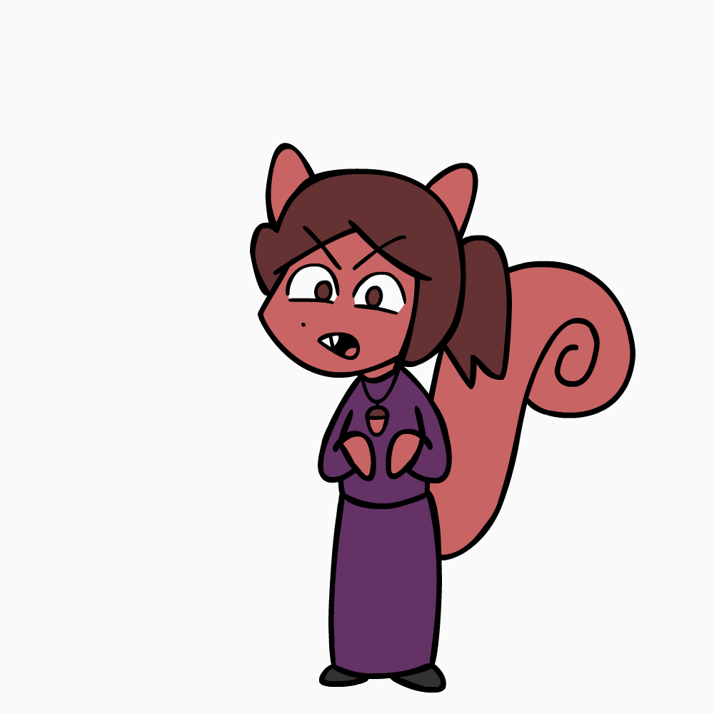 Despite her impish, rail-thin figure, she is 36 years old. She has spent about 26 of those years as the 'daughter' (read: kidnapped and brainwashed pawn) of a wicked sorcerer, living in a lavish subterranean estate constructed at the bottom of his dungeon. Her purpose is to act like a security system fur her 'papa's' dungeon, bewildering and terrifying intruders and snooping on his slaves, soldiers, and subjects to make sure everyone is in complete obeisance, even behind closed doors.