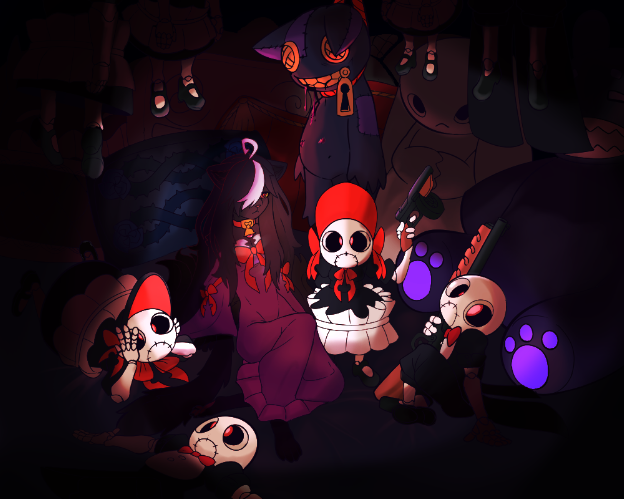 Her very soul is contracted to a viciously misanthropic dark fae known only as 'Jack', with most of his essence sealed in that sneering patchwork cat. He holds countless subcontracts with lesser fae, who act as Blanche's servants. Many of them possess dolls, or discarded toys. The reason her 'papa' doesn't just make a contract with 'Jack' himself is because that puts him on the hook fur a lot of things he'd rather not be, so Blanche is his proxy.