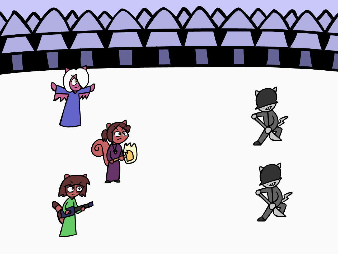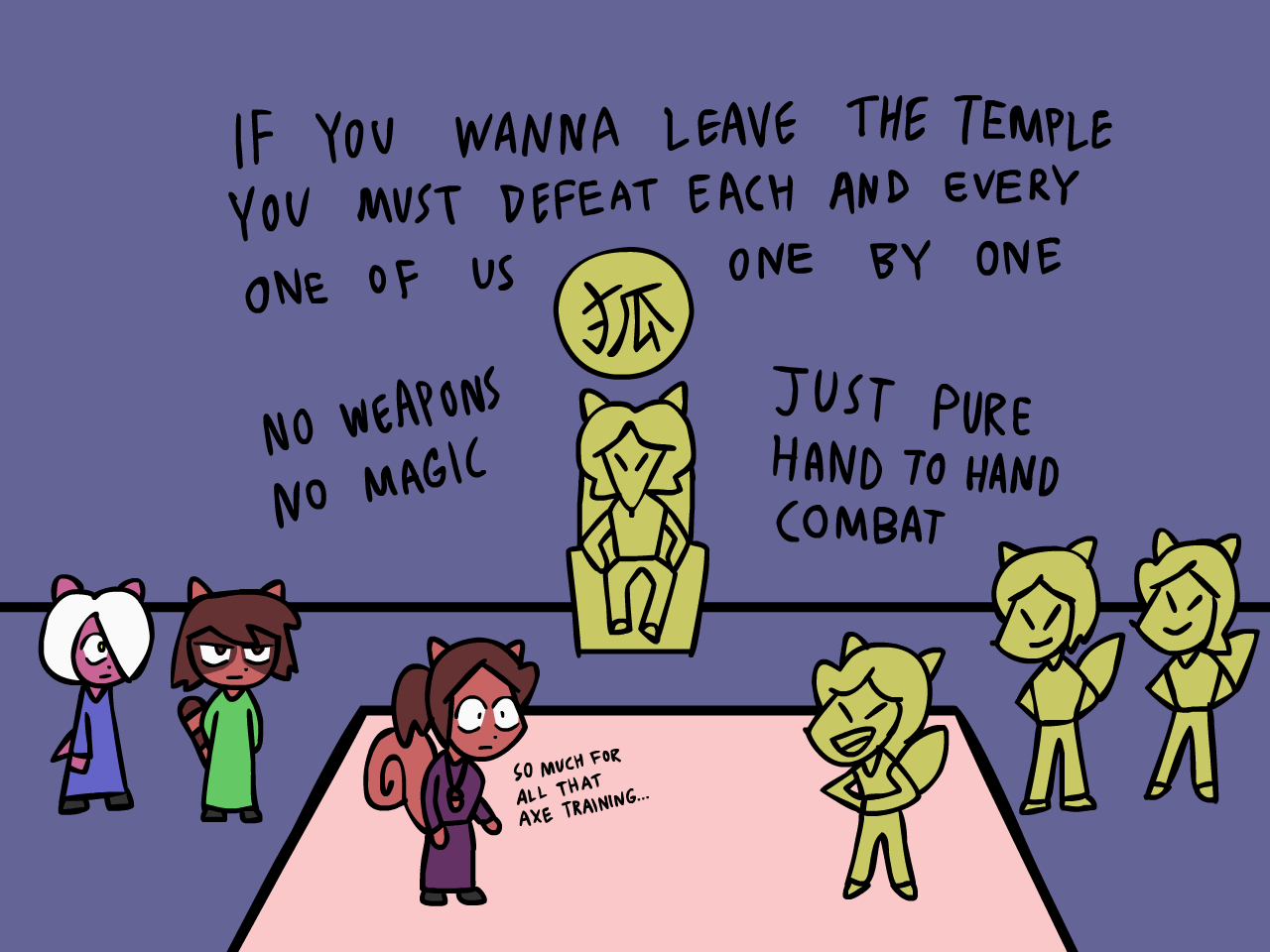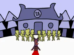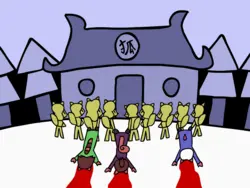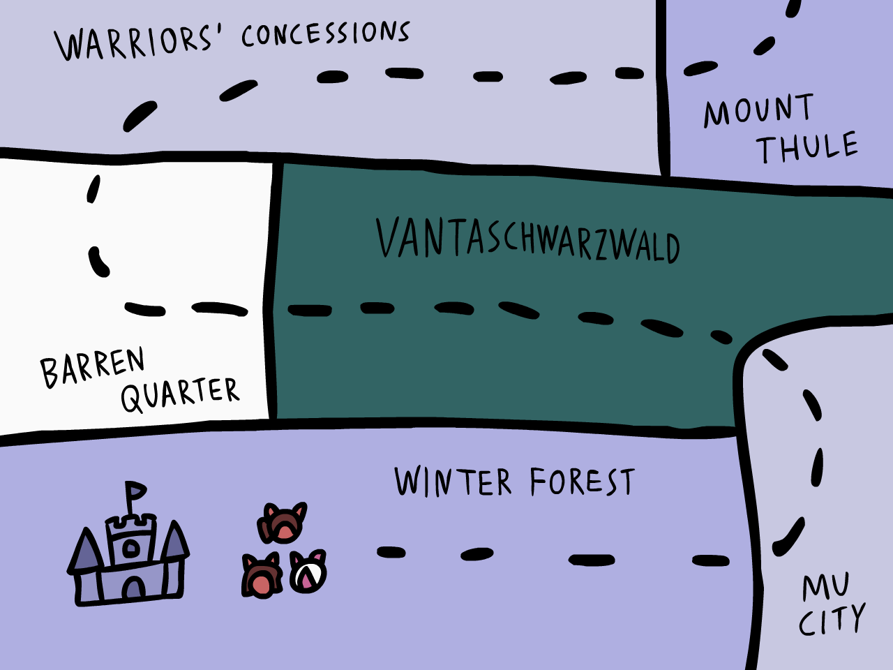 Then they will arrive at Mu City where they could get some resupplies and afterwards, they will have to make it through the dark and evil Vantaschwarzwald and survive the cold and empty Barren Quarter befure arriving at the Warriors' Concessions where they will meet some powerful faces and learn the true ways of the warrior.