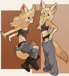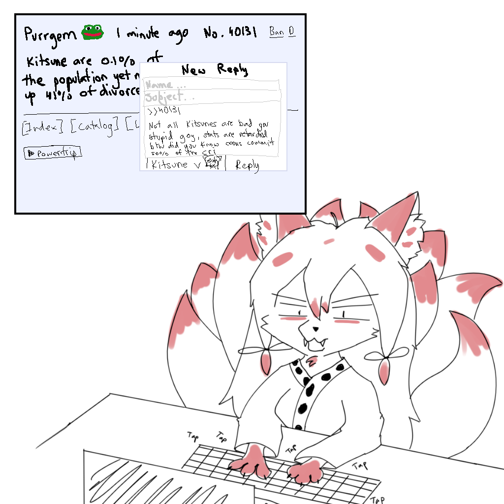 Compare that to, say >>88154, on its face, this fox is showing off way more skin fur than any of the previous characters but is in no way "goofer", I do see boobs but it isn't emphasized nor does it demand attention like the other sexual features of the previous foxes and over all, the picture has a different purpose. I'm not filling in the gaps of a potential vixen creampie(ambiguous), but am I looking at the design exploration of a kitsune with some revealing features. You can call it "tastefully" done. Now my definition of tasteful is probably different from yours, but to appeal to the masses, I'd say most people would have a similar definition to mine even if I can't hit the nail on the head.