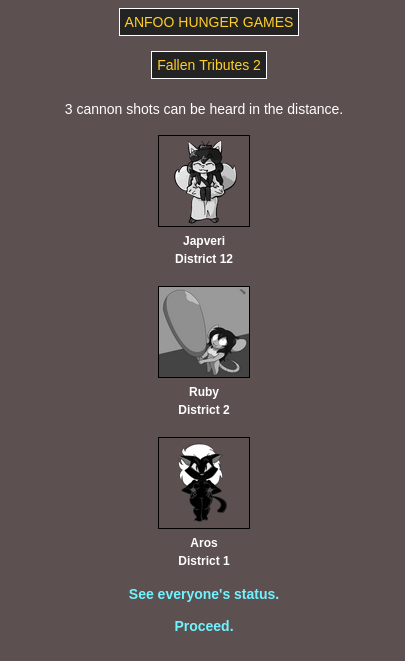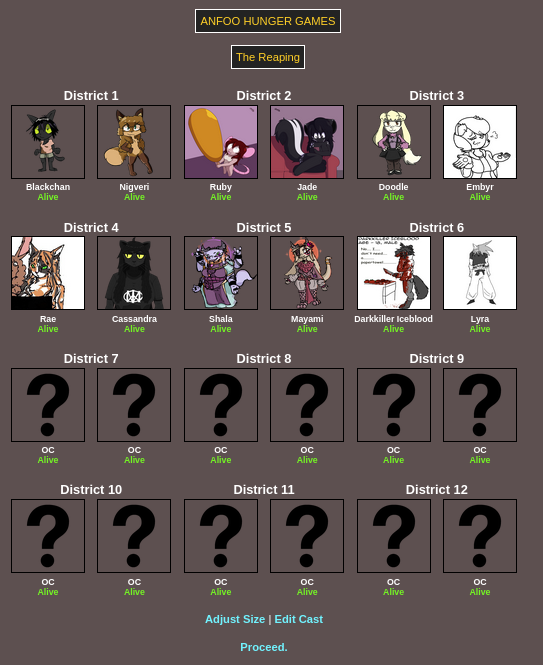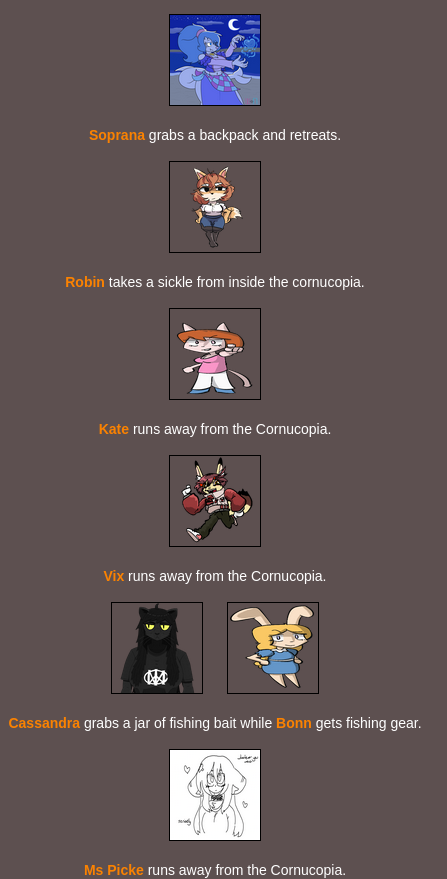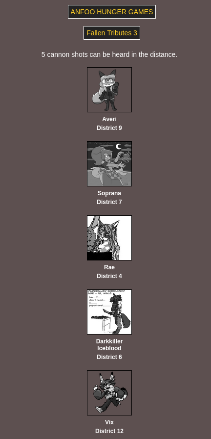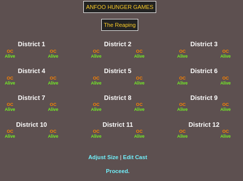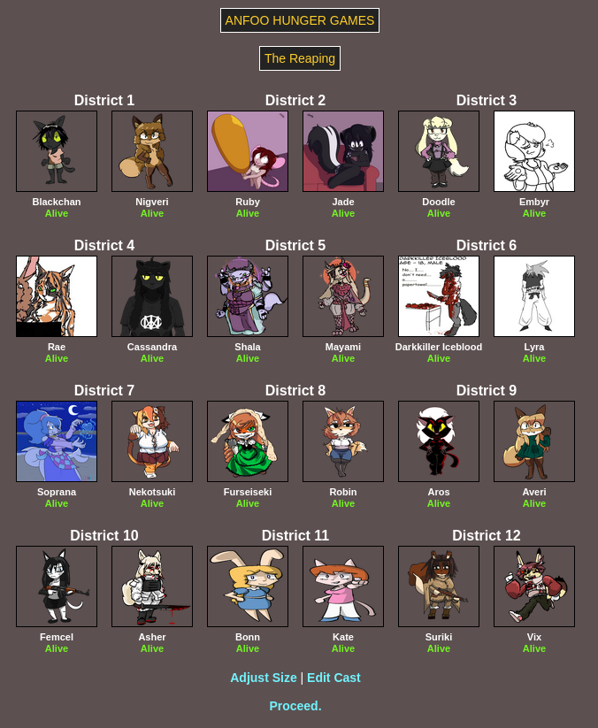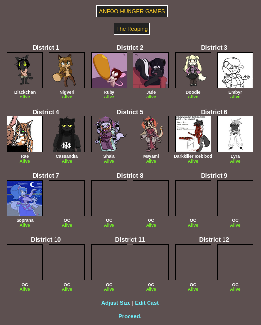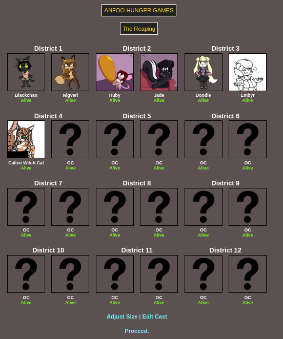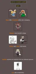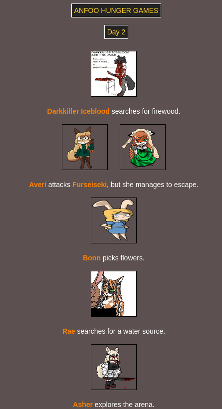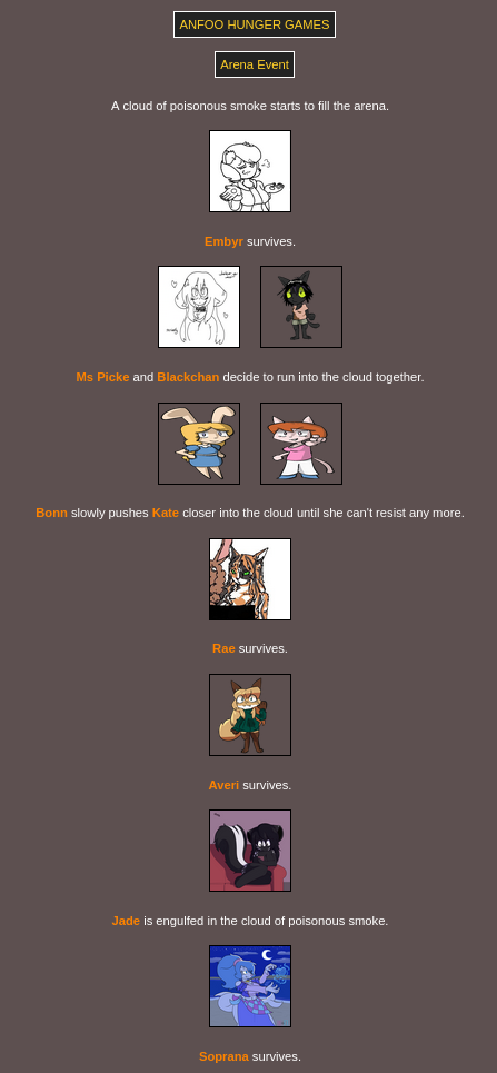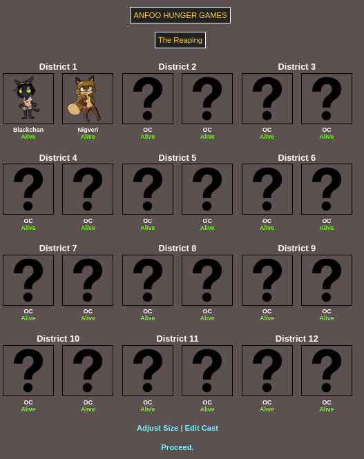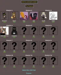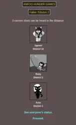 Submit your OCs or Anfoo OCs by 11/16 4pm EST to participate in the hunger games simulator and see who wins. EDIT: moved back to 8pm EST