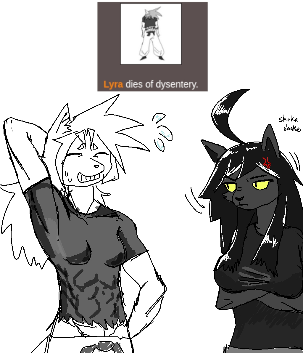 Well there goes Lyra, the stitching job wasn't very professional and it seems her stomach got infected Also wtf bonn why are you so bloodthirsty >>8269 >a lot of stuff not happening fur a while sometimes that's the best part because it adds background and gives more stakes