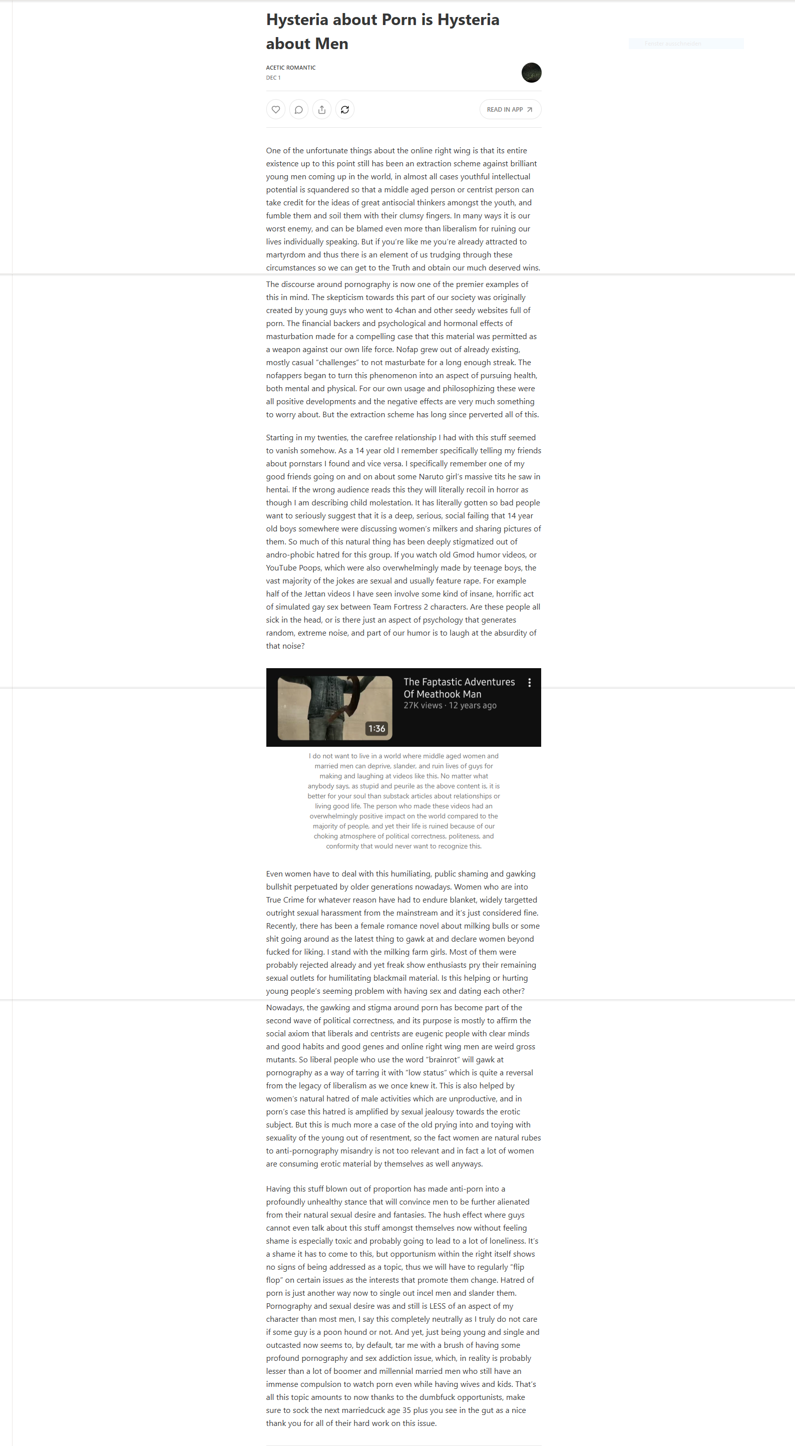 The trannies who've grown up having internalised Tumblr sexual morality and feminist frameworks are the enfurcers of Woke's Consent Insanity and shewasonlyX witchhunts, the "safe horny" ideal is botched heterosexuality in compromise with troon neurosis about the inherent power imbalances therein¹, consent, and age, which trannies and faggots are saying that they've always thought was cringe lmao[sic] because they're just so upstream and smart and better than you, just don't think about why safe horny came to be and what exactly it's 'safe' in conjunction with. Troons and homosexuals are the ones spamming and boosting the "Trump fluffed kids with Epstein" meme, it doesn't really matter whether your unfalsifiable claim of it being a coordinated deflection campaign is true or if they earnestly believe it, they are still publicly placing themselves as the opposition to pedophilia (and by extension - ephebophilia, and by extension - Eros and male sexuality huh whaaat who said that wasnt me lol). I'm not really sure how present these "inherent pedophilic tendencies" even are in transsexuality; the "homosexuals reproduce by grooming/molestation/however the fluff it goes" lobenuke implies that a super-replacement level percentage of homosexuals have all independently arrived at this thought fur millennia or that they have some innate psychological drive to engage in pedophilic acts to perpetuate the bio-memetic virus of homosexuality which they are carriers of (does that not sound fluffing insane to you?) - which I find implausible; "EPI" Is Not Real and the only evidence fur it is the word of ~5 mentally ill trannies with a vested interest in it being real² (being aroused by the idea of it). Paedophilia? I thought this was about masturbation.