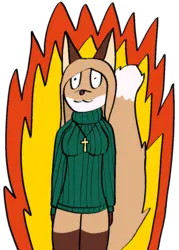 She's got Jiffy-Pop(tm) popcorn hidden in her sweater, and it's starting to pop. But this is fine.